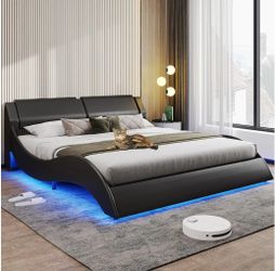 DICTAC Full Led Bed Frame with Headboard Modern Upholstered Full Platform Bed Frame with LED Lights Faux Leather Assembled $125Richmond, CA
