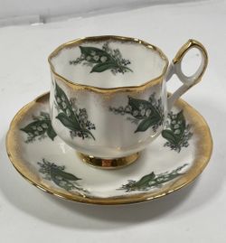 VTG Elizabethan Fine Bone Tea Cup Saucer Set Green Floral Gold Inlay Handle Rare / Free Shipping $20Chicago, IL