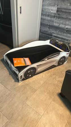 Toddler Car Bed with Memory Foam Mattress , Mattress Cover , Black Satin Fitted Sheet and an additional black fitted sheet in bag$80Houston, TX