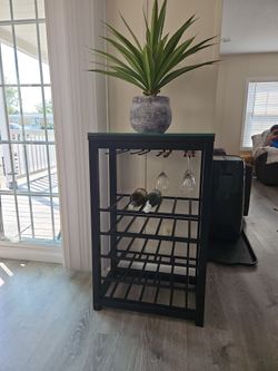 Wine Cabinet. Black ,and brown on top whit cristal. $25Waukegan, IL