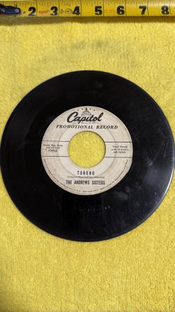 This item is a collectible vintage 7-inch vinyl record, specifically a Capitol Records promotional 45 RPM release featuring "Torero" by The Andrews Si$10Monrovia, CA