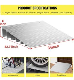 3" High Rise Door Threshold Ramp Aluminum Entry Ramp or Doorways Rated 800 lbs Load Capacity for Wheelchair Scooters Power Chairs Walkers Metallic$40Rancho Cucamonga, CA