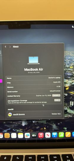 2024 MacBook Air 13-inch M3 Chip$960Jacksonville, FL