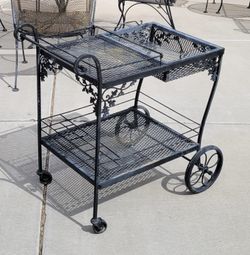 Vintage Russell Woodard Black Iron Rolling Bar Cart Removable Tray Patio $950Phoenix, AZ