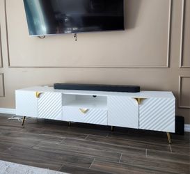 Glossy White TV Stand lacquer like new 79x17x20H max tv 95"$249Oakland Park, FL