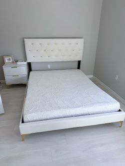 Queen bed frame white and gold with Nightstand$199Oakland Park, FL