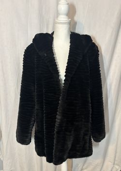 East 5th Faux Fur Hooded Black Coat - Large $35West Babylon, NY