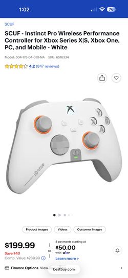 SCUF - Instinct Pro Wireless Performance Controller for Xbox Series X|S, Xbox One, PC, and Mobile - White$150Bonney Lake, WA
