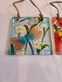 Hand Painted Embossed Fused Glass Suncatchers - Hummingbird And Dragonfly$30Silverdale, WA