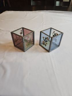 2 Stained Glass And Pressed Flowers Candle Holders - Burnes Of Boston$20Silverdale, WA