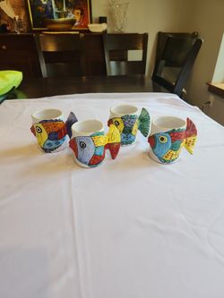 4 Hand Painted Desuir Vietri Mugs (Kissing Fishes)$100Silverdale, WA