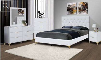 Upholstered Eastern King Panel Bed and Bedroom Set. The set, Home Furnishings, features a black and gold color scheme with a m$999Hollywood, FL