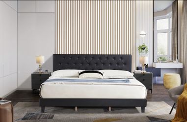 Black Leather Queen Size Platform Bed, Brand New Inbox🤩 Follow For Deals 🤩$199Miami Beach, FL