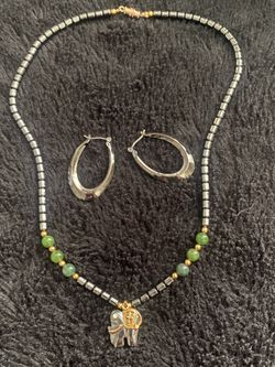 Vintage Hermatite Stones Elephant Pendant Necklace W/Hematite Beads And Earrings$55Derby, CT