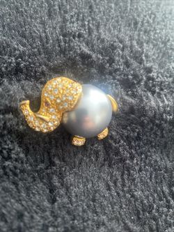 Vintage Pearl Belly Elephant Brooch, Designer Signed GY or CY$50Derby, CT