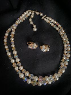 Classic 1950 Necklace White beaded faux Pearl & Filigree With Matching Clip Ons$25Derby, CT