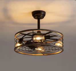 WDETR 20 in. Farmhouse Downrod Mount Indoor Brown Caged Ceiling Fan With Light Black Fan Blades Remote Included$105Irwindale, CA