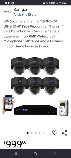 Brand New In Box GW Security 8 Channel 12MP NVR UltraHD Face Recognition/Human/Cars Detection PoE Security Camera System with 6 x 8MP Waterproof Mi$1,000Turlock, CA