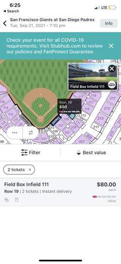 Padres Dodgers 2 Tickets - Field Level 18 Rows Behind Dugout Section 111 $95San Diego, CA
