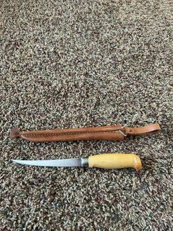 J. MARTTIINI hand ground stainless fixed 7 1/2" blade knife, Finland, leather. $35Des Plaines, IL