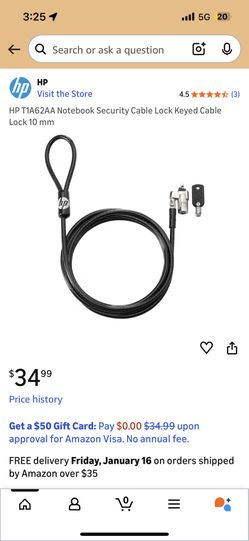 HP T1A62AA Notebook Security Cable Lock Keyed Cable Lock 10 mm$20Downey, CA