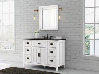 Artisan 48 in. Single Sink White Bath Vanity with Black Marble Top (Assembled)
