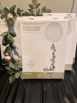 White Balloon With Pink Roses On Vine Balloon String $5Wantagh, NY