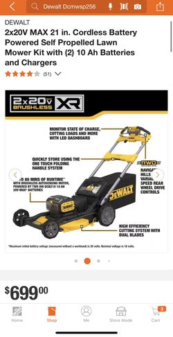 DEWALT 2x20V MAX 21 in. Cordless Battery Powered Self Propelled Lawn Mower Kit with (2) 10 Ah Batteries and Chargers$599North Las Vegas, NV