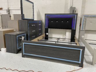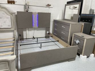 New LED Queen Bed frame with dresser and mirror and 1 nightstand with wireless charger 🚚 we can deliver 🚚