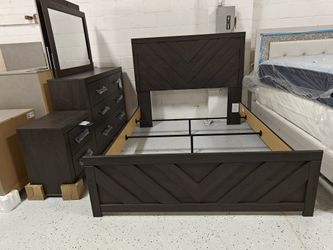 New Queen Bed frame with dresser and mirror and 1 nightstand 🚚 we can deliver 🚚
