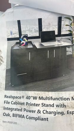 Real space 40” W Multifunction Mobile File Cabinet Printer Stand With Integrated Power & Charging, Espresso Oak, BIFMA Compliant$250Milwaukee, WI
