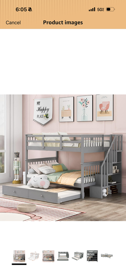 Merax Full-Over-Full Bunk Bed with Twin Size Trundle, Soild Wood Stairway Bunk Bed with Storage and Guard Rail for Bedroom, Grey$550Brookfield, IL