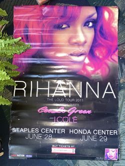 promotional poster for the Rihanna Loud Tour 2011. Touring Artist: Rihanna, with special guests Cee Lo Green and J. Cole. Dates: June 28 and June 29,$135West Hollywood, CA