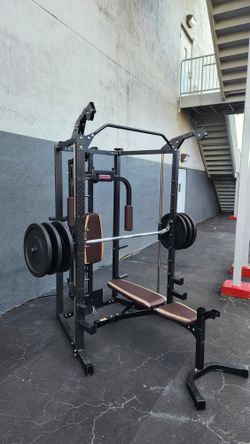 $1000 Home Gym Power Rack Smith Machine + Reclynable Bench+240 Pounds&Libras & Plates Set. 45s pair Olympic 25s pair Standard & 1inches Hold 25s pa$1,000Miami, FL