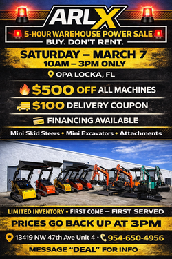 MINI SKID STEER AND MINI EXCAVATOR WAREHOUSE SALE THIS SATURDAY$5Miami Gardens, FL