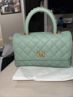 rare 23P CHANEL Small Classic Coco Top CHAIN Handle Flap Lt Green Caviar Gold Bag$6,000Los Angeles, CA