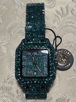 AJ Watches Green Bling Watch Iced Out Rectangle Face$60Winston-salem, NC