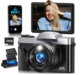 4K Digital Camera for Photography with WiFi,64MP Autofocus Vlogging Camera for YouTube,3'' 180° Flip Screen Compact Travel Camera for Teens with 32GB $30Fort Worth, TX