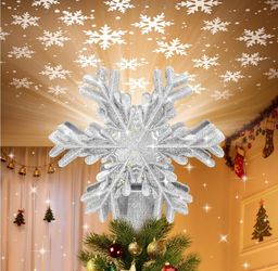 Christmas Tree Topper Lighted with Built-in LED Rotating Snowflake Projector, 3D Hollow Glitter Silver Snowflake Tree Topper for Xmas Party Holiday Ch$10Fort Worth, TX