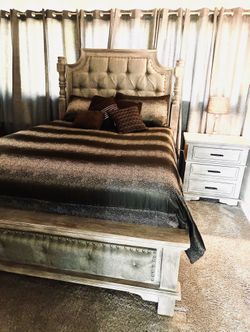 Ashley Furniture Queen Bed & Nightstand Set - Distressed Gray/Tufted$650Sherman, TX