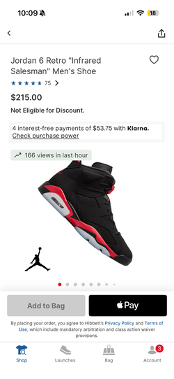 Jordan 6 Retro "Infrared Salesman" Men's Shoe$225Westbury, NY