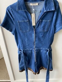Denim Romper Leopard Trim$50Alpharetta, GA