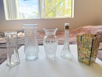 Set of 5 Decorative Vases – Includes Heavy Crystal, Eiffel Tower, and Iridescent Mosaic$25Los Angeles, CA