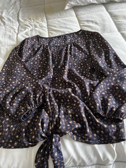 Navy Blue With Beige Print Background, Long Sleeve Blouse$12Oakland Park, FL