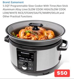 5.5QT Programmable Slow Cooker With Timer, Non Stick Aluminum Alloy Liner.SLOW COOK HIGH/SLOW COOK LOW/WHITE RICE/STEAM/SAUTE/WARM/DELAY,and Other Pra$50Andover, MN
