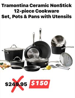 Tramontina Ceramic NonStick 12-piece Cookware Set, Pots & Pans with Utensils$150Andover, MN