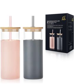 2Pack * 15.2oz Glass Tumbler with Straw and Bamboo Lid, Iced Coffee Cup Reusable, Smoothie Cups, Tumbler with Silicone Protective Sleeve - BPA Free$12Diamond Bar, CA