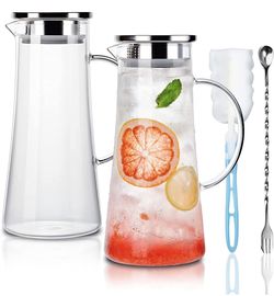 1.4 Liter 47 Ounces High Borosilicate Glass Carafe/Pitcher Set of 2 with Stainless Steel Flip-top Lid,Hot/Cold Water Jug,Juice/Iced Tea,Wine,Coffee,Mi$20Duarte, CA