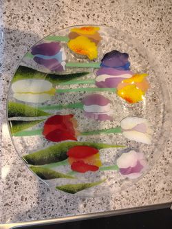 Beautiful Vintage 1992 Genesis Tulip Garden Fused Glass BOWL$25Bremerton, WA