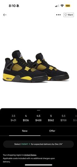Jordan 4 Yellow Thunder $250South Gate, CA